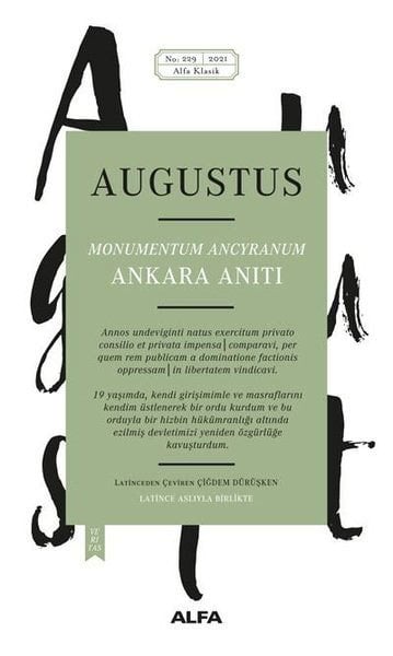 İS 3 Nisan 13’te vasiyetini yazar ve ölümünden dört ay önce Vesta rahibelerine teslim eder. Üç rulo halindeki bu vasiyetin ikinci rulosu, Augustus’un şahsen gerçekleştirdiği hizmetleri anlatan belgedir. İmparator, Res Gestae olarak tanınan bu belgenin tunç levhalarla kazınıp kendi anıt mezarının girişine asılmasını emretmiştir. Ölümünden sonra bu vasiyet yerine getirilir, hatta bu levhalar çoğaltılıp imparatorluğun çeşitli eyaletlerine gönderilerek bütün yurttaşlarca okunması, böylece hem İmparatorun şahsına hem de onun döneminde altın çağını yaşayan imparatorluğa beslenen saygının kat kat artması beklenir. Ne var ki levhalar asıldığı yerde kalmaz ve zaman içinde kaybolur. 16. yüzyılda, Asia Minor’un Ankara kentinde, mermer üzerine Latince ve Yunanca olarak iki dilli yazılmış bir kopyası, Augerius Gislenius Busbequius tarafından keşfedilinceye ve bu keşif sonradan Monumentum Ancyranum (Ankara Anıtı) olarak adlandırılıp epigrafi ve klasik filoloji tarihinin en önemli keşifleri arasında yerini alıncaya değin büyük bir sessizliğe gömülür.